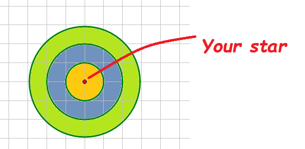 10. So what on earth is it doing, and how does it measure comparative brightness? My understanding is that it draws a three circles of increasing radii around each star, as I show here: