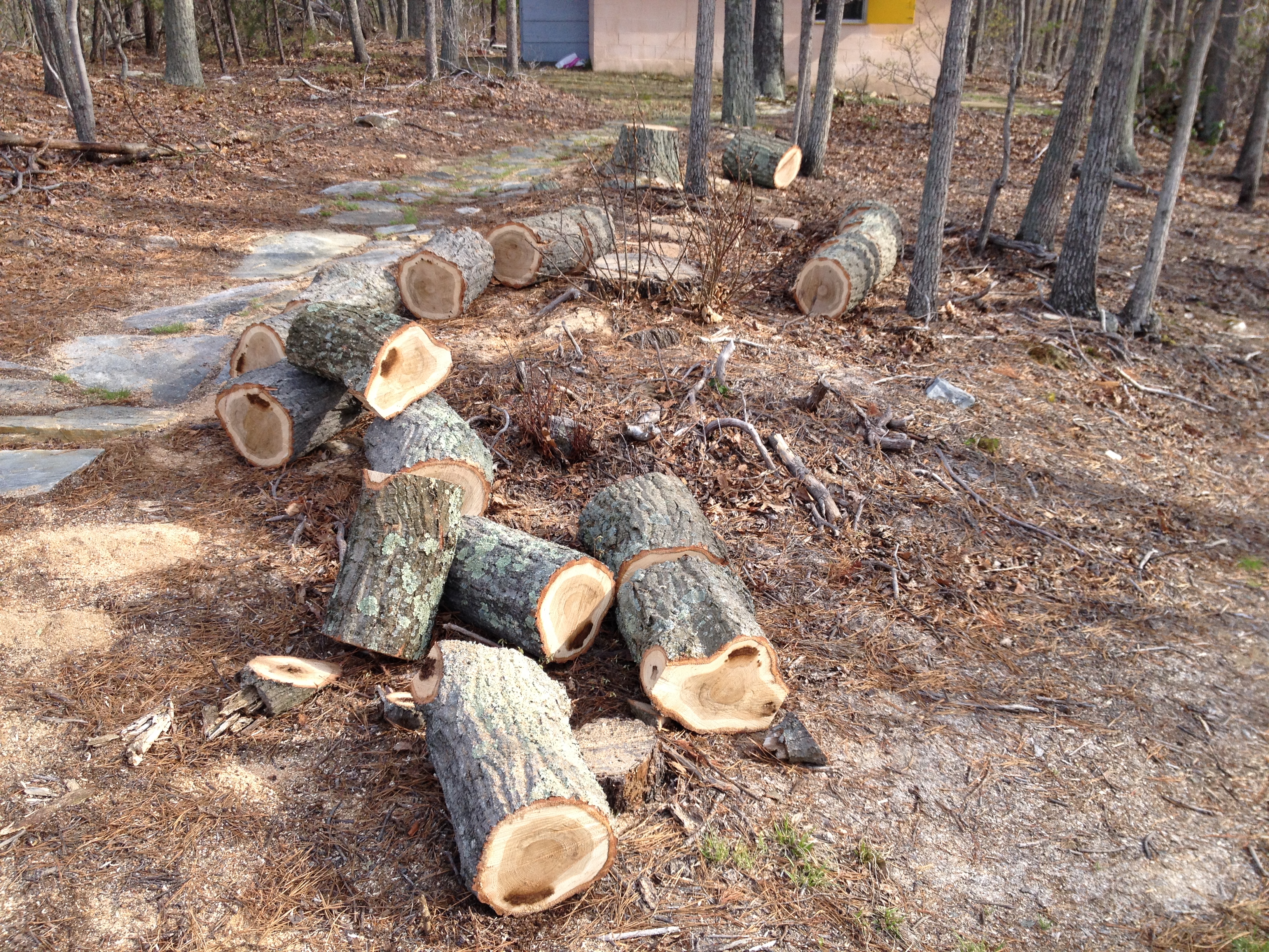 Yesterday, we felled a large red oak tree that was blocking our view of Polaris from the outside pier. (If you can’t see the North Star then it becomes very, very difficult to align your telescope for imaging.) Since the observatory was built in the 1970s and 1980s a lot of trees have grown a lot taller, and we’ve had to cut or trim several of them. This one apparently sprouted in 1940, by my count. Fortunately, one of our members heats his house with wood, and burned about 7 cords last winter. This tree is not even one cord.