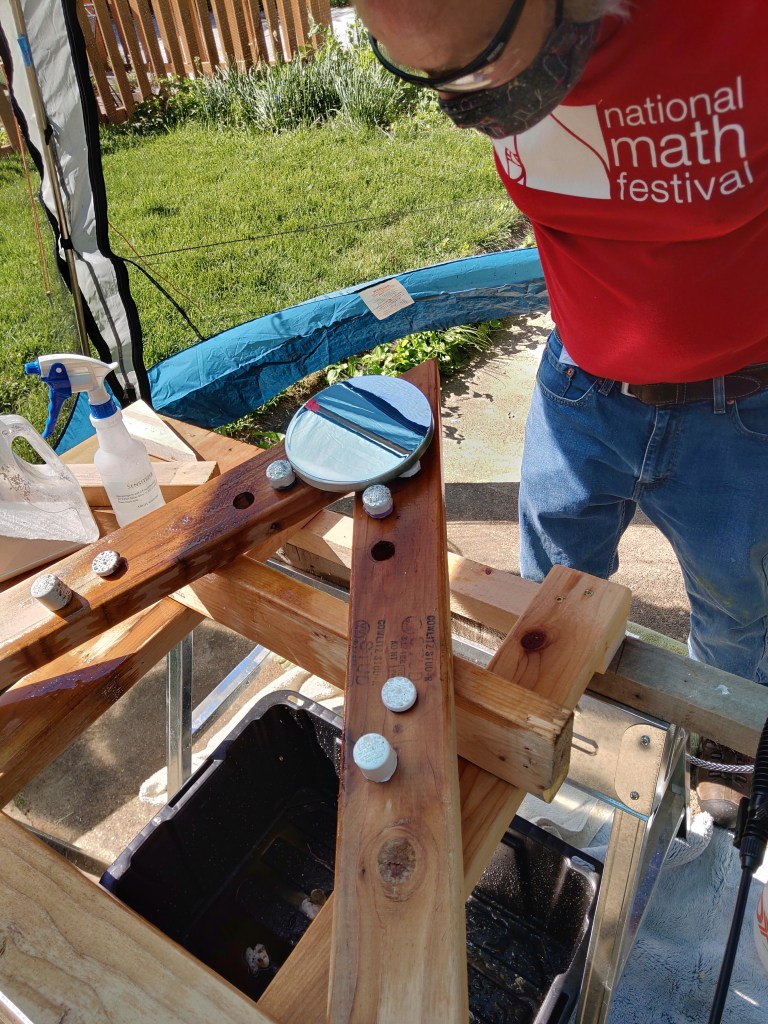 Today Alan T and I tested the silvering process in my driveway using the screen tent canopy that we use at the ATM workshop to stop dust particles from landing on mirrors that are being polished. (After getting permission to go retrieve the canopy from the Covid-closed rec center, we immediately went into the parking lot to hose off a decade of dust!!)