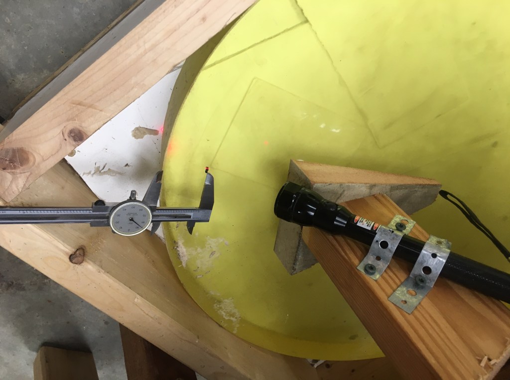 I slid the jig back and forth until I could make it so that the refracted laser beam just barely hit the bottom edge of the glass blank.