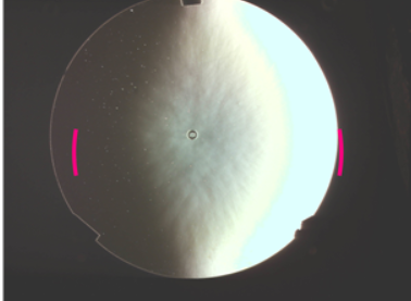Just now, I finally figured out how to use IrfanView to take one of the images, flip it left-to-right (that is, across the y-axis) and superimpose one onto the other with 50% transparency. A bright ring appeared, which shows the circular ring or zone where the light from our LED, located just under the camera lens, goes out to the mirror and bounces directly back to the lens and is captured by the sensor as a bright ring.
