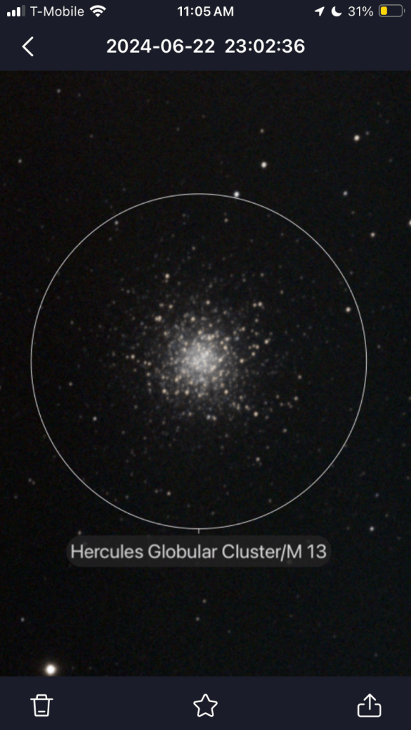 I went up to Hopewell on Wednesday night, and practiced once again taking images of RRLyrae with my Seestar S50, but this time with the built-in light-pollution rejection filter in place. I figured that would reduce the number of photons by a lot, and maybe by enough to stop overwhelming the pixels.