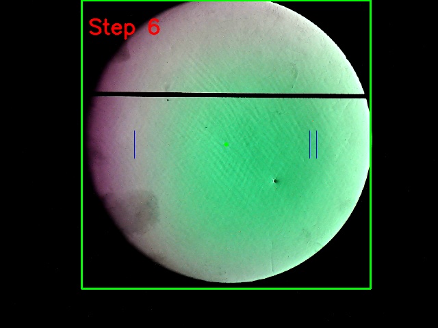 The fact that the blue dots don’t fit the dotted line perfectly, and behave pretty oddly at positive or negative 80 millimeters, both agree with the fact that we can see on the photos that the surface of this mirror is rather rough, as you can see in the images below. Note also that the image labeled ‘Step 6’ found not one, but two null zones on the right, indicated by two vertical blue lines.