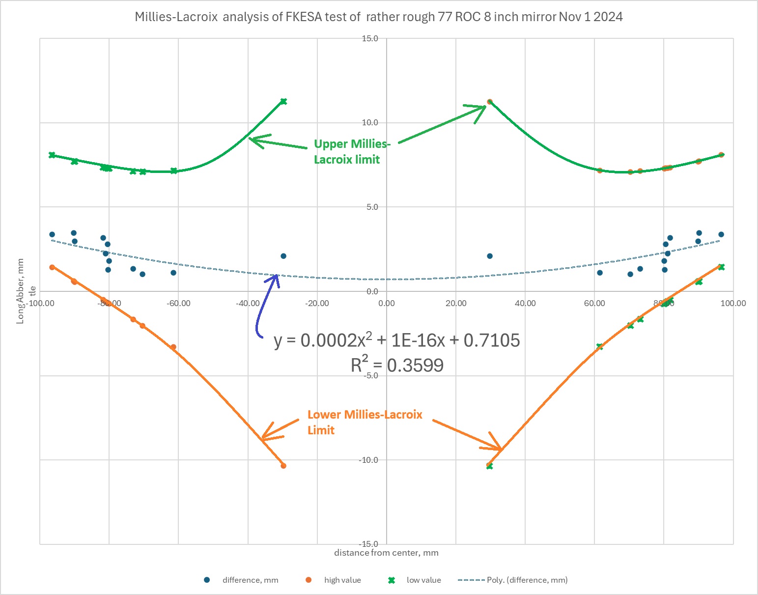 The blue dots just above the x-axis are the measurements for this one particular mirror with a diameter of 8″ and a radius of curvature of 77 inches.