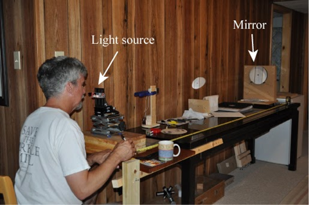 But enough on that. At the telescope-making workshop here in DC, I want folks to be able to make the best ordinary, parabolized, and coated mirrors possible with the least amount of hassle possible and at the lowest possible cost. Purchasing high-precision, very expensive commercial interferometers to measure the surface of the mirror is out of the question, but it turns out that very inexpensive methods have been developed for doing that – at least on Newtonian telescopes.