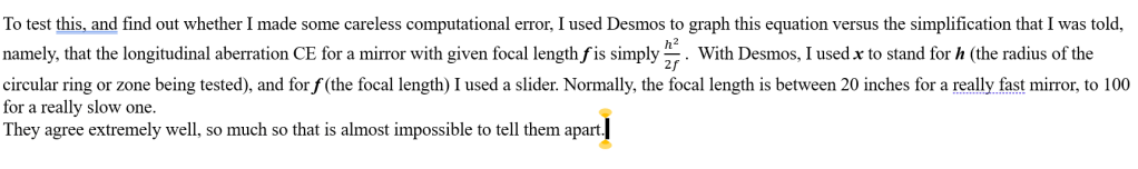 It involves optical testing for the making of telescope mirrors, which is something I find fascinating, as you may have guessed. Towards the end of this very long post, you can see the corrections, if you like.
