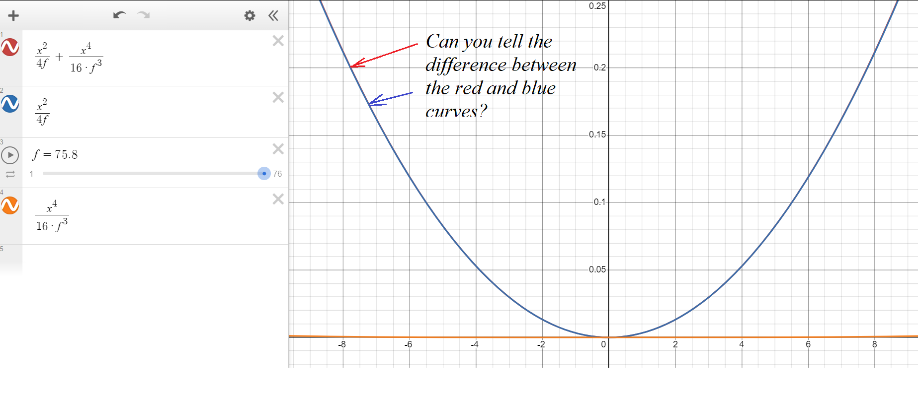 where LA means ‘longitudinal aberration and the capital R is the radius of curvature of the mirror, or twice the focal length. So that’s exactly the same as what I computed.